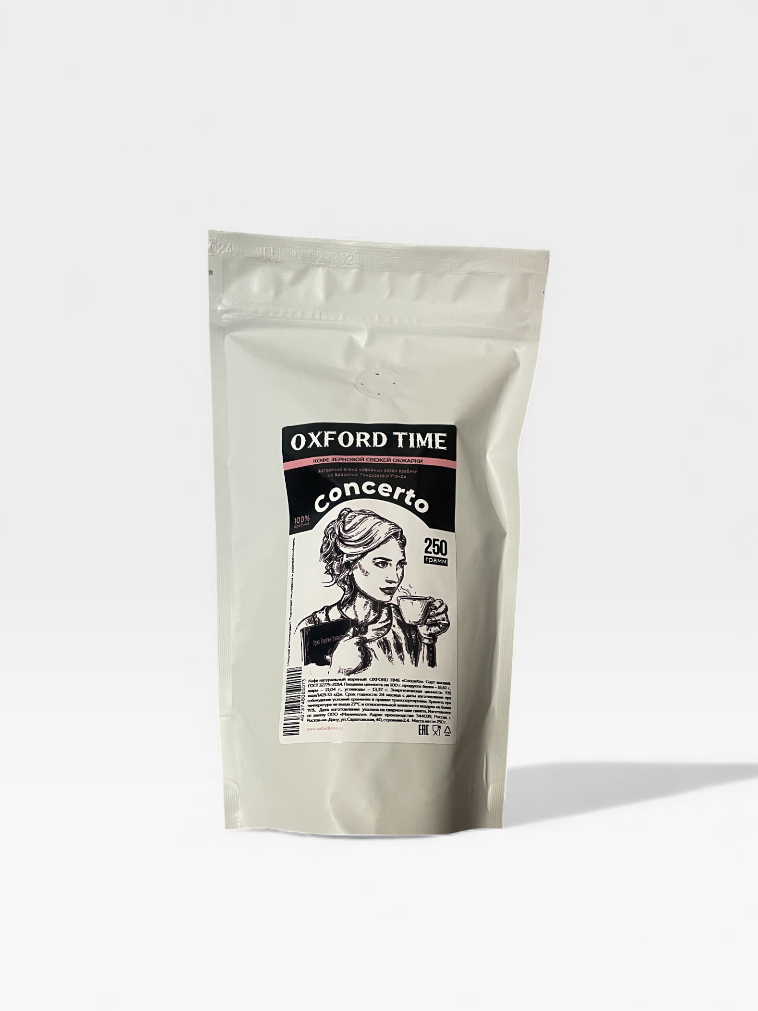 Кофе в зернах OXFORD TIME Concerto, пакет 0.25 кг.
